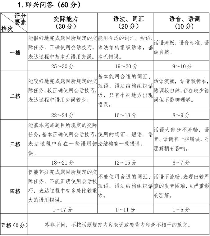 1.外语口试成绩采用优、良、合格、不合格四个等第呈现。外语口试成绩不计入高考成绩,仅供有外语口试要求的招生专业使用。外语口试题型详见附件。
