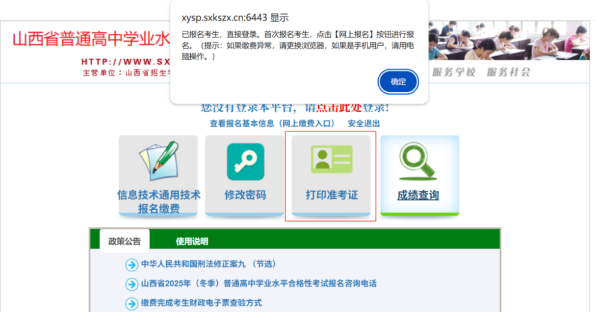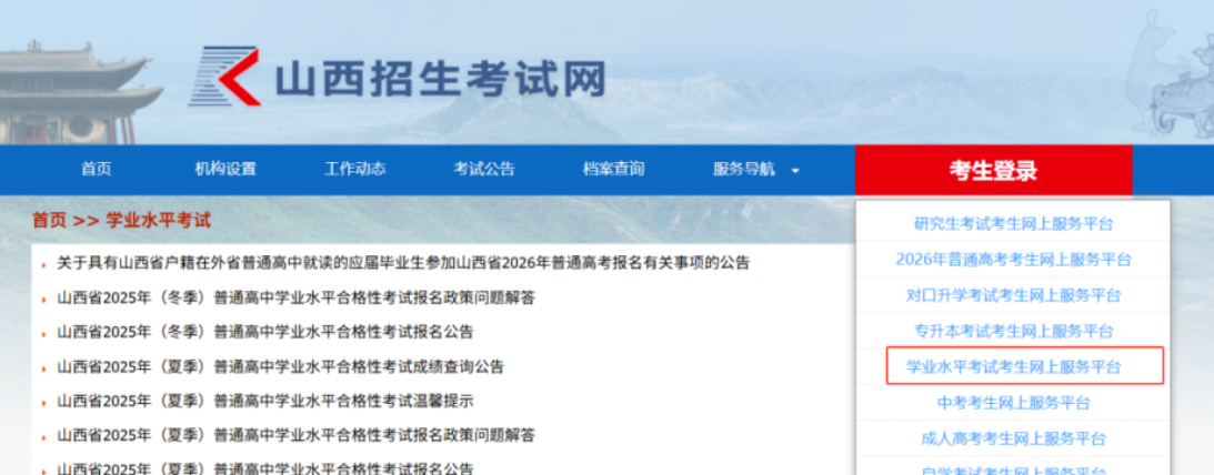 山西省2025年(冬季)普通高中学业水平合格性考试准考证采取网上打印的方式。自12月20日起,考生可登录山西招生考试网学业水平考试考生网上服务平台,使用A4纸自行打印准考证。
