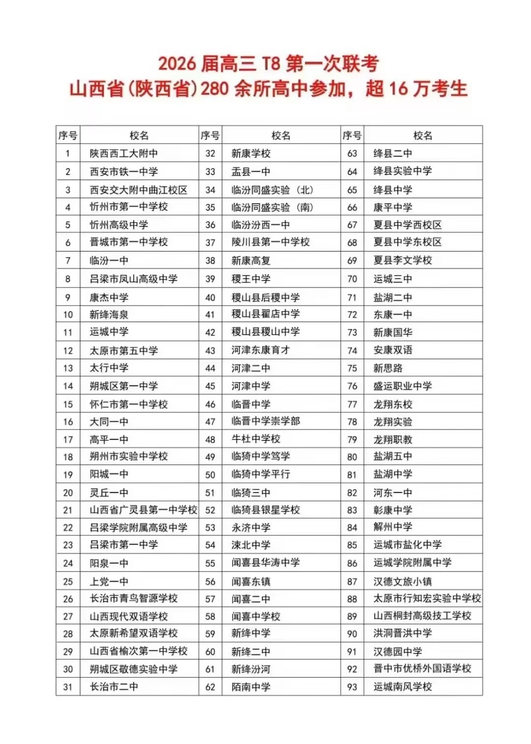 山西、陕西2026届高三T8联考分数线