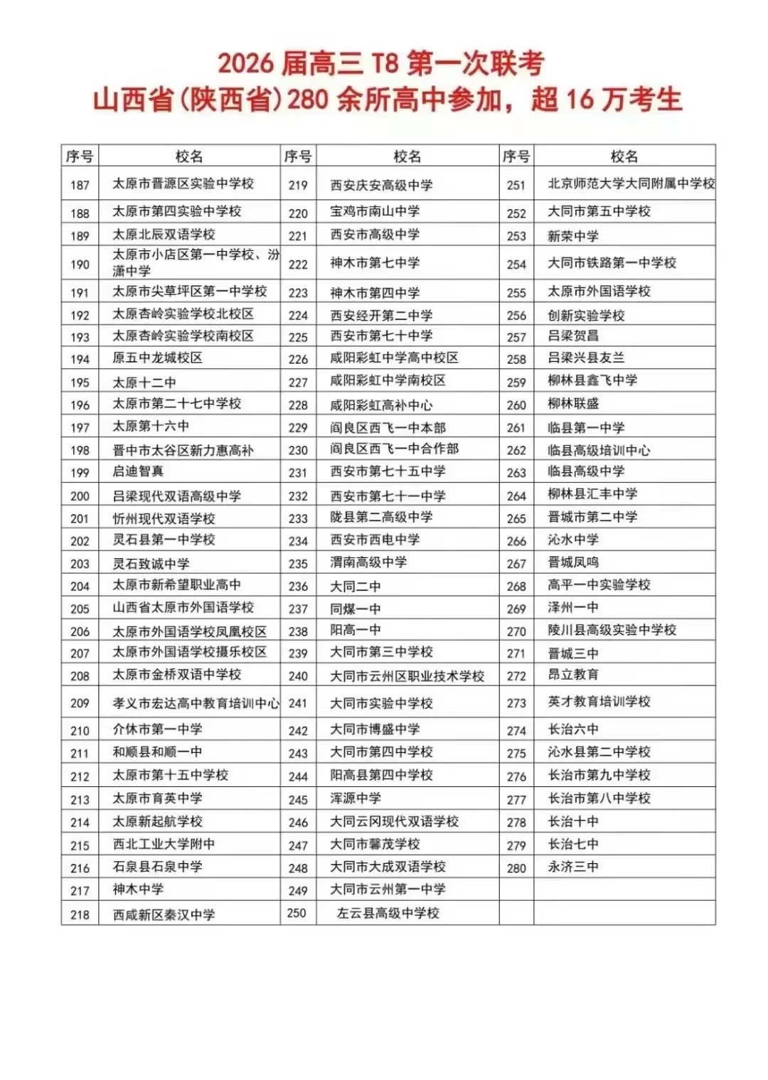 上周,T8联考已经顺利结束,周末的时间,山西、陕西两地2026届高三T8联考分数线已公布,和自主选拔在线一起来看。