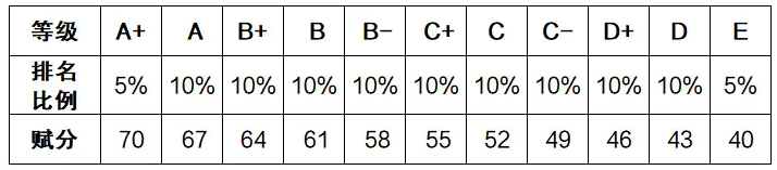 以上海的5等11级赋分表为例,如果小明的排名在5%之内,那么该同学就会被赋予A+等级,其所对应的分数即为70分,这也是小明该科的最终分数。