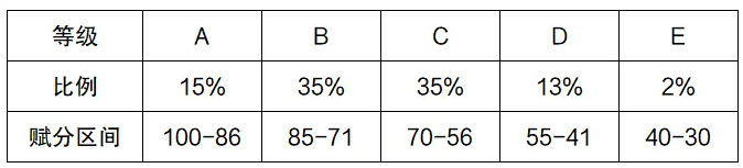 我们以“3+1+2”地区的5等级制为例,下面是其等级赋分表: