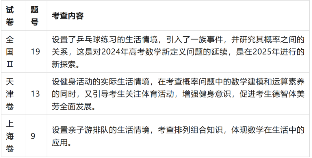 取材于学生日常生活中的真实问题,贴近学生实际,具有现实意义。如全国甲卷理科第6题取材于滑冰和滑雪两项冰雪运动,具有时代气息;全国甲卷理科第9题以志愿者报名参加公益活动的情境考查排列组合内容。