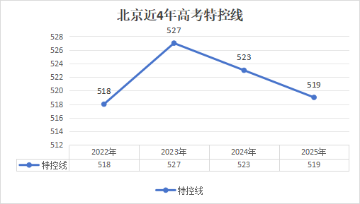 从2022年至2025年的数据来看,北京特控线呈现小幅波动态势,整体维持在518-527分区间。其中2023年达到最高(527分),随后两年连续小幅下降,2025年(519分)已回落至接近2022年水平(518分)。这一波动趋势反映出特控线在招生计划、考生人数与整体成绩分布等因素影响下保持相对稳定,对2026届考生而言,近年分数线可作为预估参考,但需结合当年招生政策与报考形势综合判断。