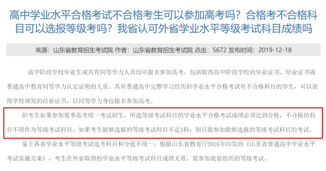 考生若参加夏季高考,所选等级考试科目(高考中6选3的“小3科”)的合格考成绩不合格,则该科目不能参加高考!