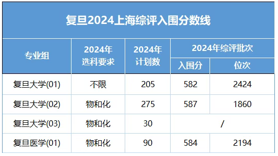 复旦2024年上海入围分在582分以上,各专业组入围分及位次如下: