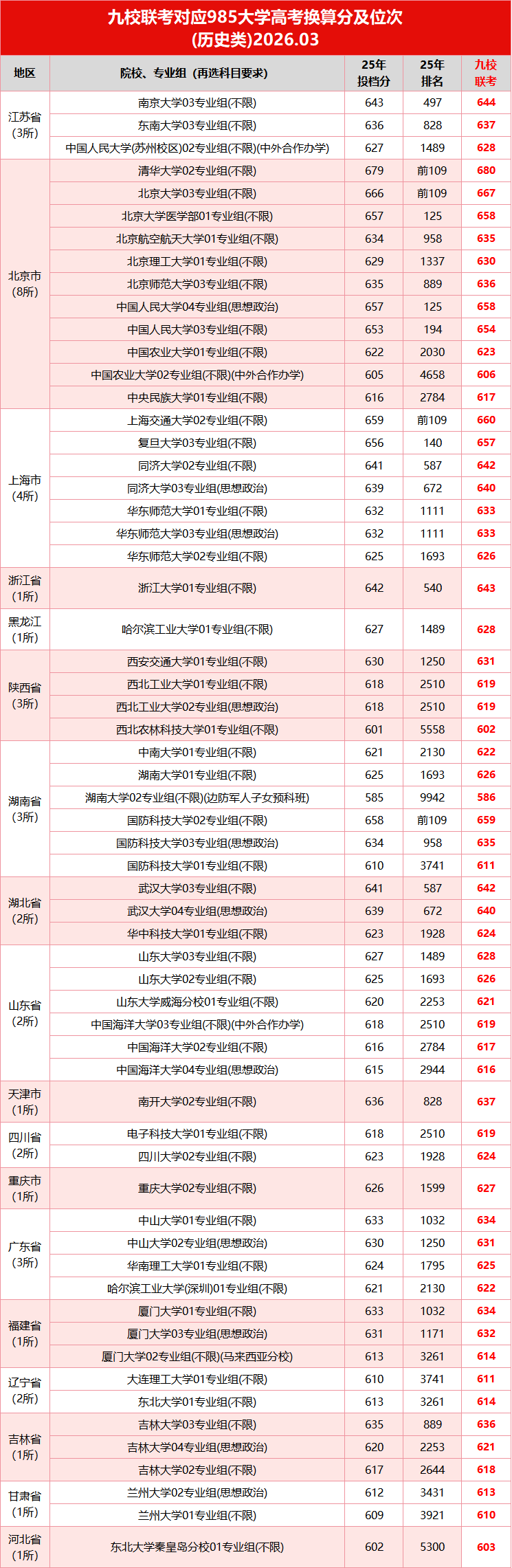 历史类考生多少分能上省内985/211大学?通过线差法计算如下,大家参考对应列数据。