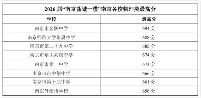 2026届南京盐城一模各校最高分出炉