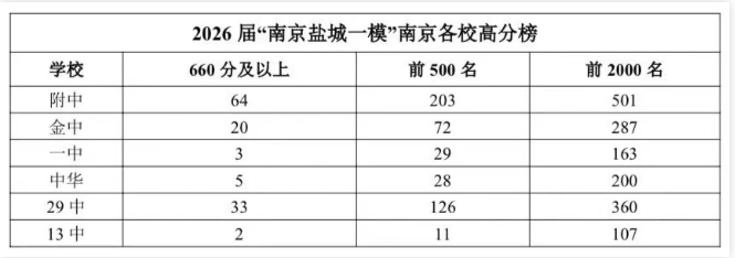 高分段人数更是各校实力的硬核比拼,南师附中直接断层领先:660分及以上高达64人,前500名占203人,前2000名501人,这个数据真的太能打了!29中、金中也表现不俗,660+、高分段位次人数都很能打,一中、中华、13 中也各有亮点,南京的高中梯队感直接拉满。