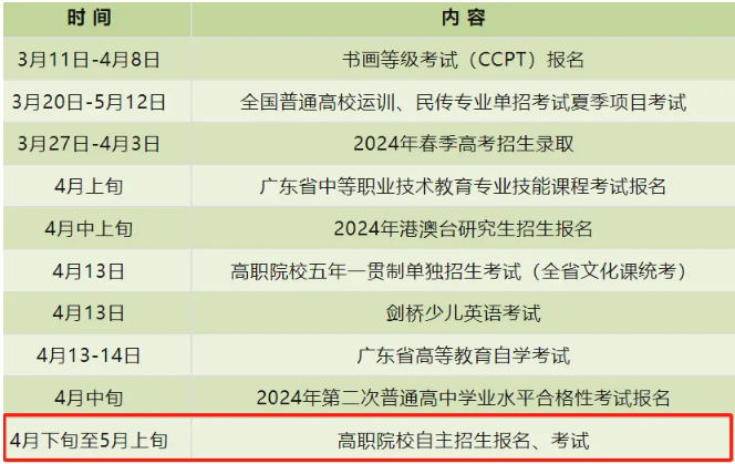 自主招生考试安排在3+证书录取结束之后,一般在每年4-5月进行报名和考试。