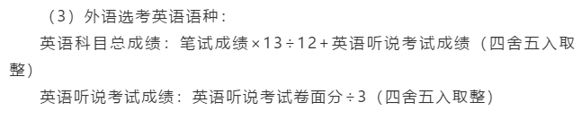 高考英语总成绩构成:笔试卷面成绩×13÷12+英语听说考试成绩(英语听说考试卷面分÷3)