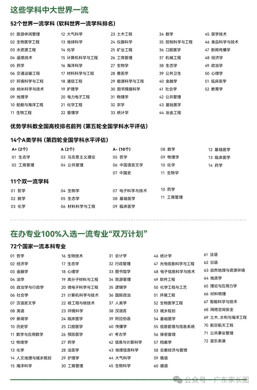 中山大学52个世界一流学科,14个A类学科,11个双一流学科,72个国家一流本科专业!