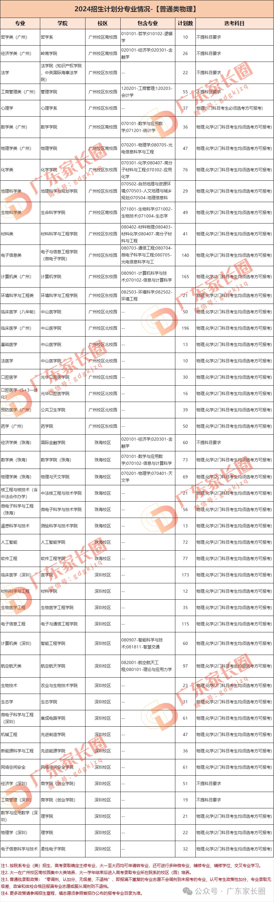 2、2024年招生专业、选考科目要求和在广东招生计划如下: