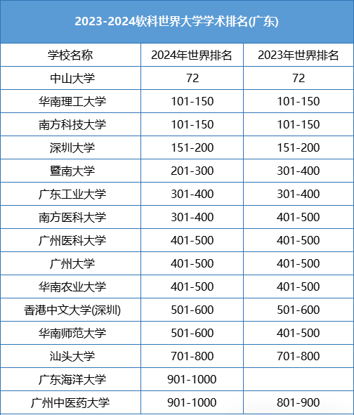 在省内双一流院校中,中大位列全球100强,华工、南科大位列全球200强,暨南大学位列全球300强,华师位列600强。在省内非双一流院校中,南方医科大学进步显著,首次入围全球400强,深大持续位列500强,更有广工、广州医科大学、广大、华农等也在全球500强之中。