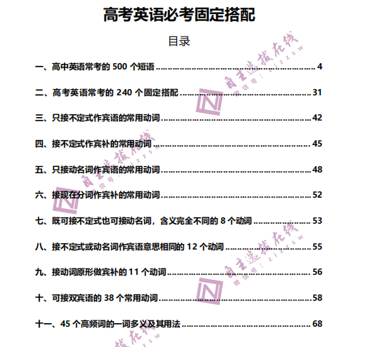 由于文章篇幅有限,完整版《高考英语必考固定搭配总结》点击文末下方pdf文件下载