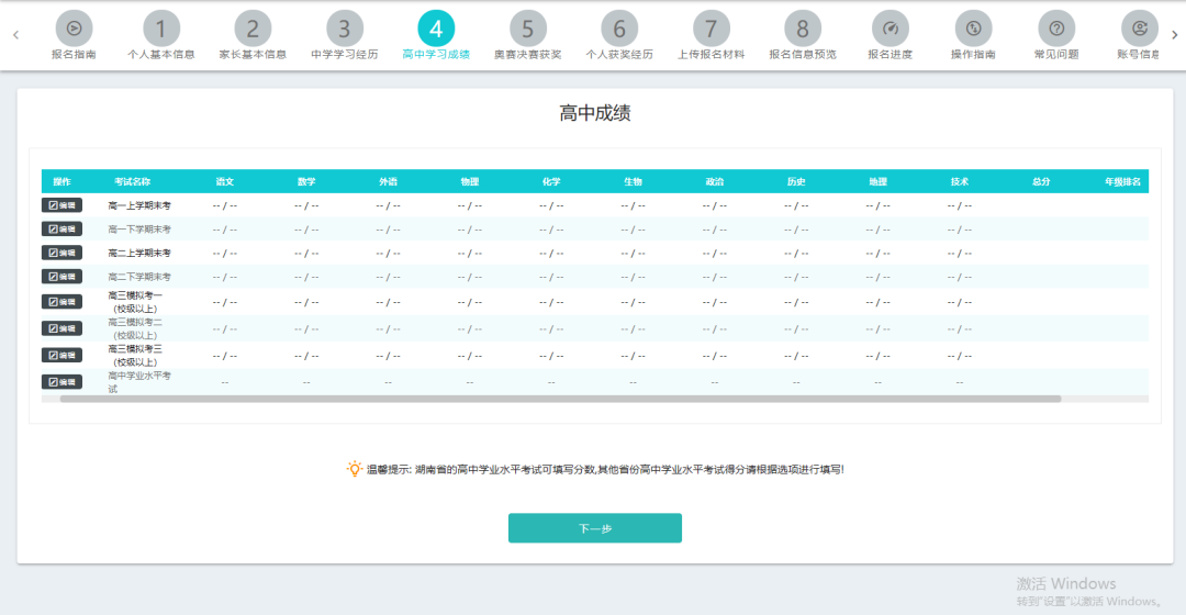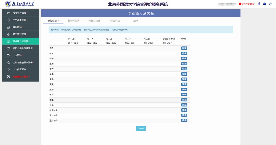 综评院校在报名系统中需要提交高中成绩页面,该界面的信息也是综评院校重要参考的信息之一,各位考生家长一定要引起重视,合理规划备考。