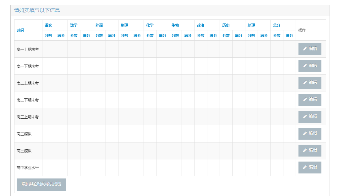 深圳北理莫斯科大学综评报名系统—高中成绩页
