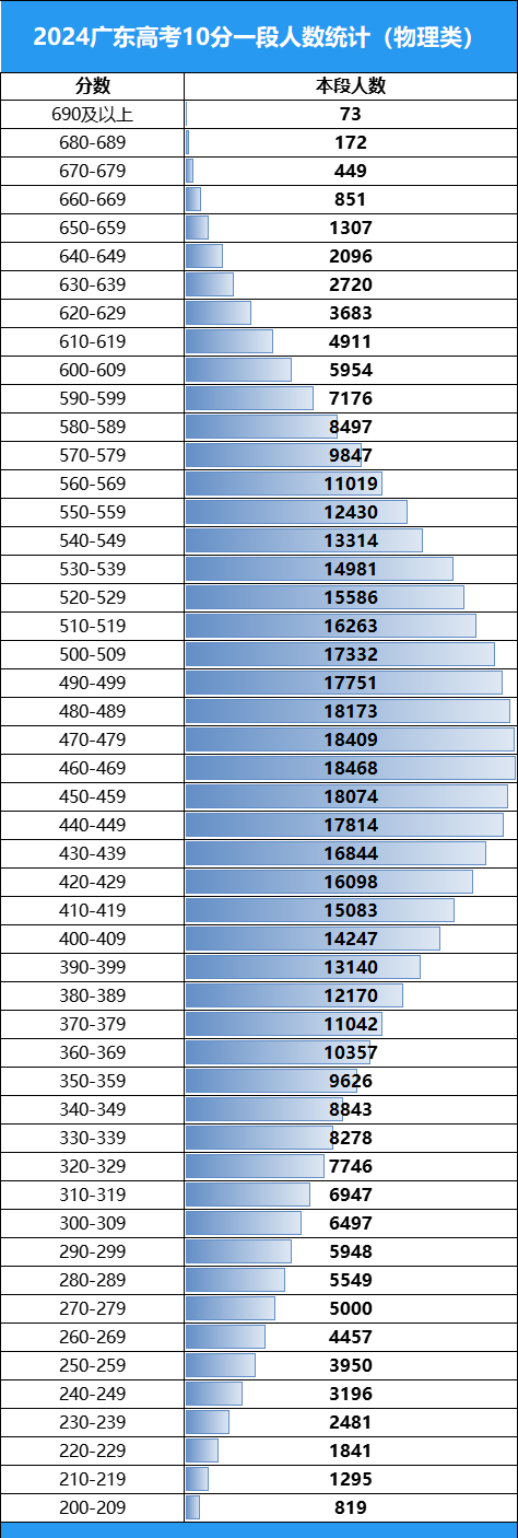 近年来广东高考人数逐年上涨,今年更是突破72万,很多考生和家长纷纷表示高考竞争越来越激烈了!一分决定生死!我们对2024年一分一段表各分数的人数作了统计,每十分为一个间隔,来分析2024年人数的情况,看看哪个分数段人最多?竞争最激烈?一起来看~