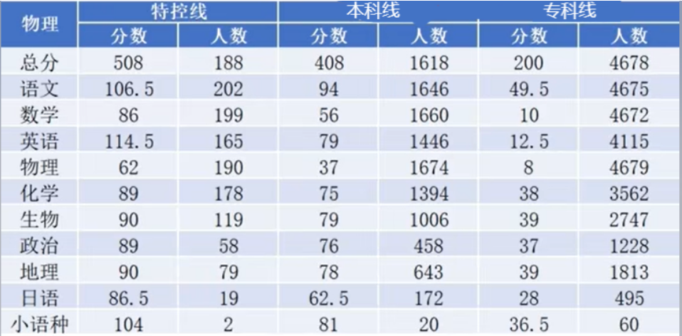 | 物理 | 特控线 | 木科线 | 专科线 | |||