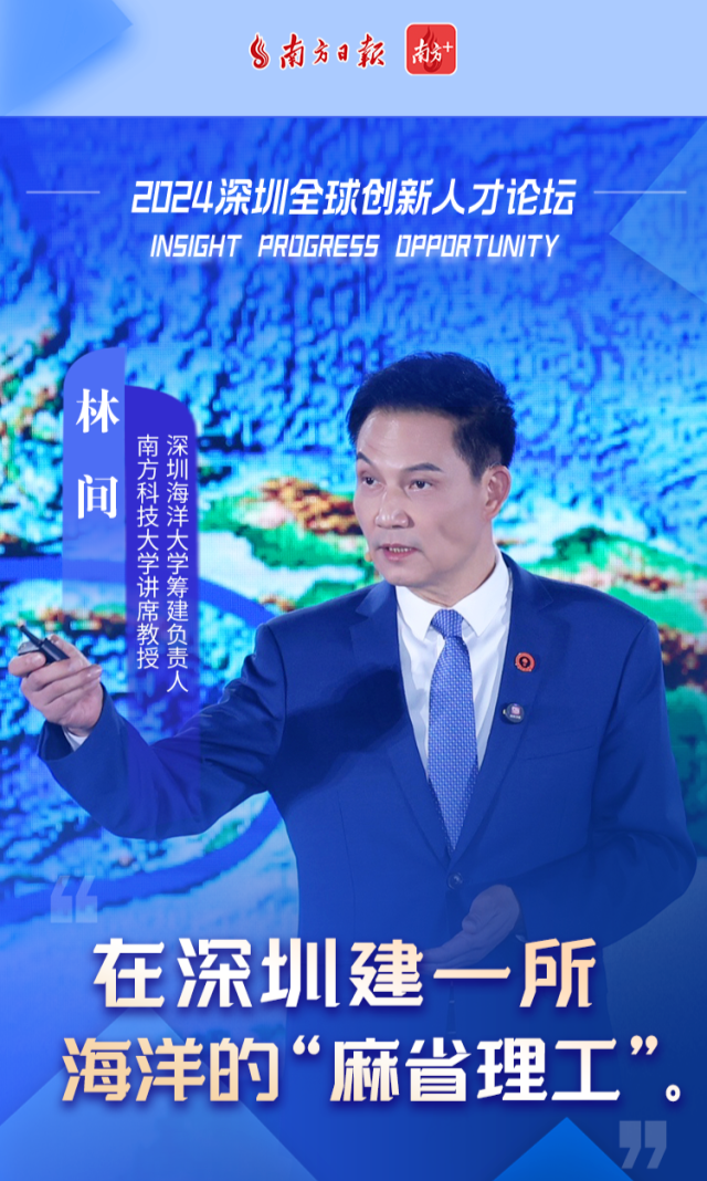 11月1日,2024深圳全球创新人才论坛举行,南方科技大学讲席教授、深圳海洋大学筹建负责人林间出席论坛并发表主题演讲。
