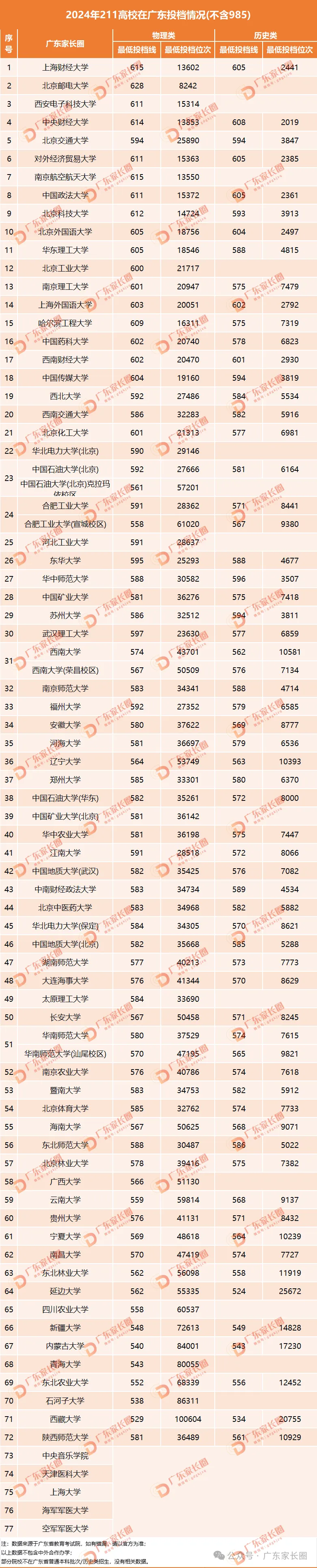 下面广东家长圈为大家整理盘点了:211院校2024年在广东本科普通批录取数据,希望对大家有所帮助,建议收藏!