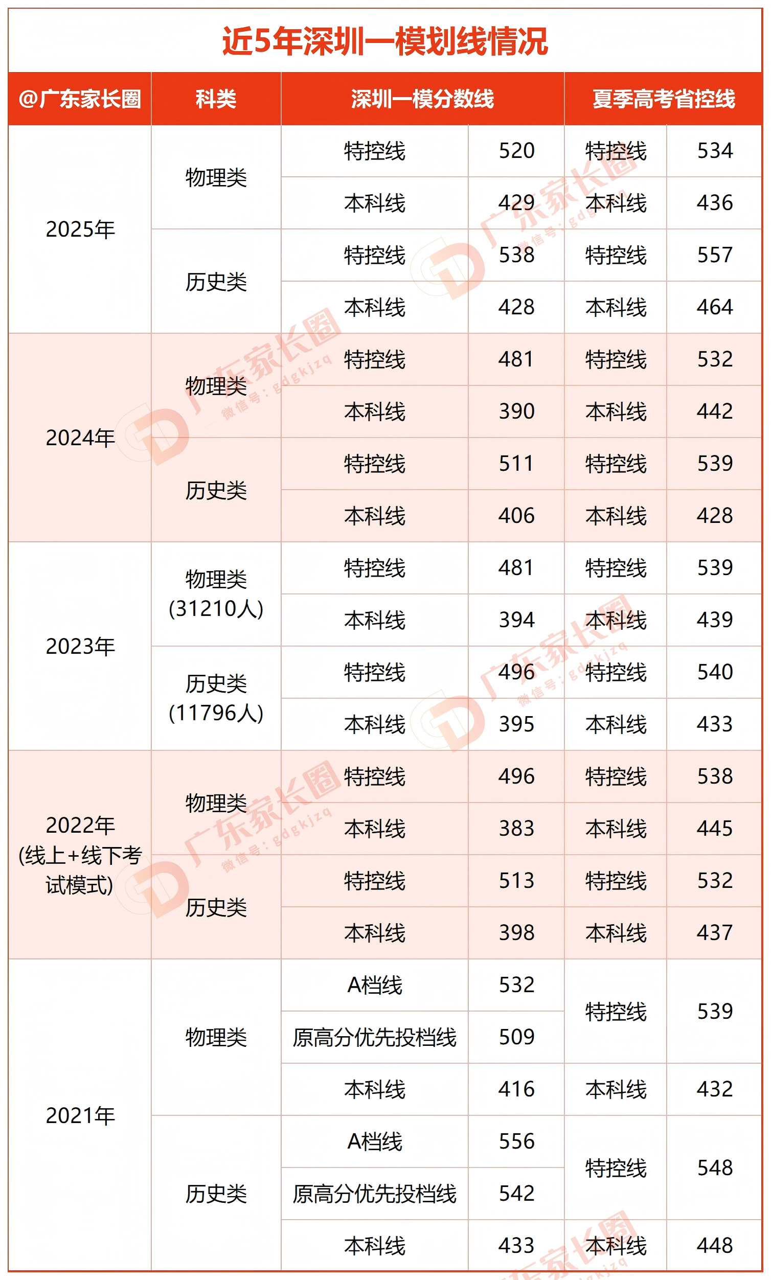 深圳一模历年分数线对比