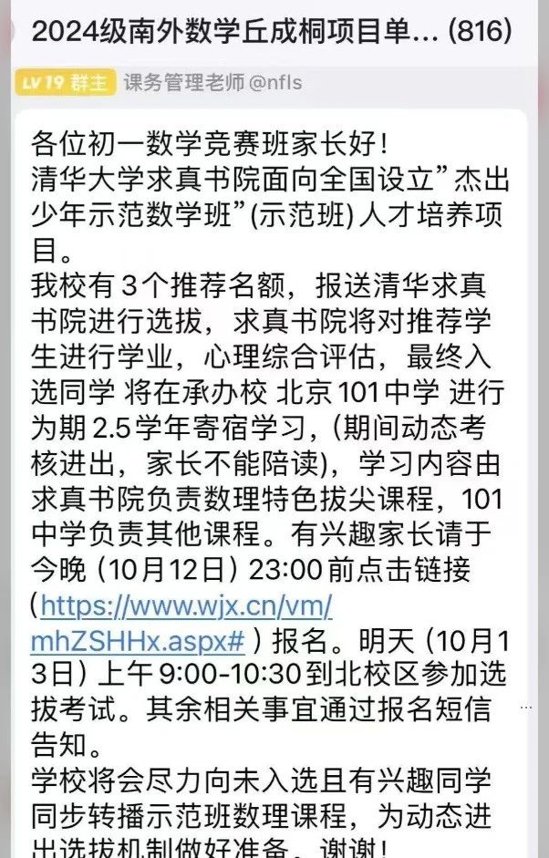 清华“丘班”开启选拔!南外3名牛娃获得推荐!