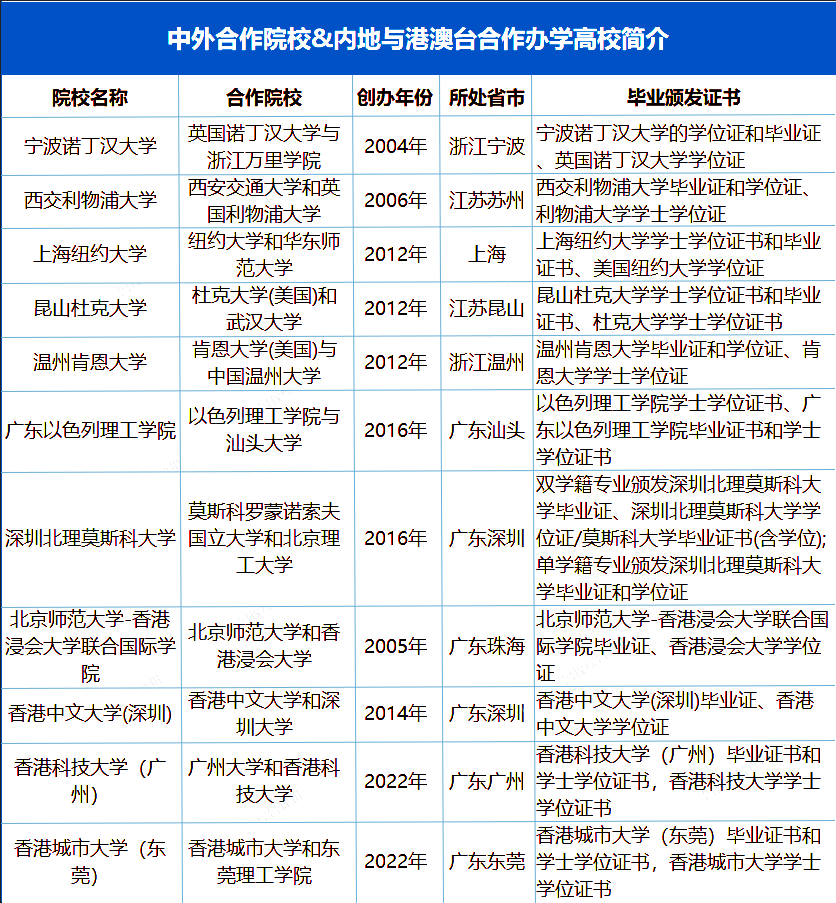 中外合作大学&内地与港澳台合作办学高校