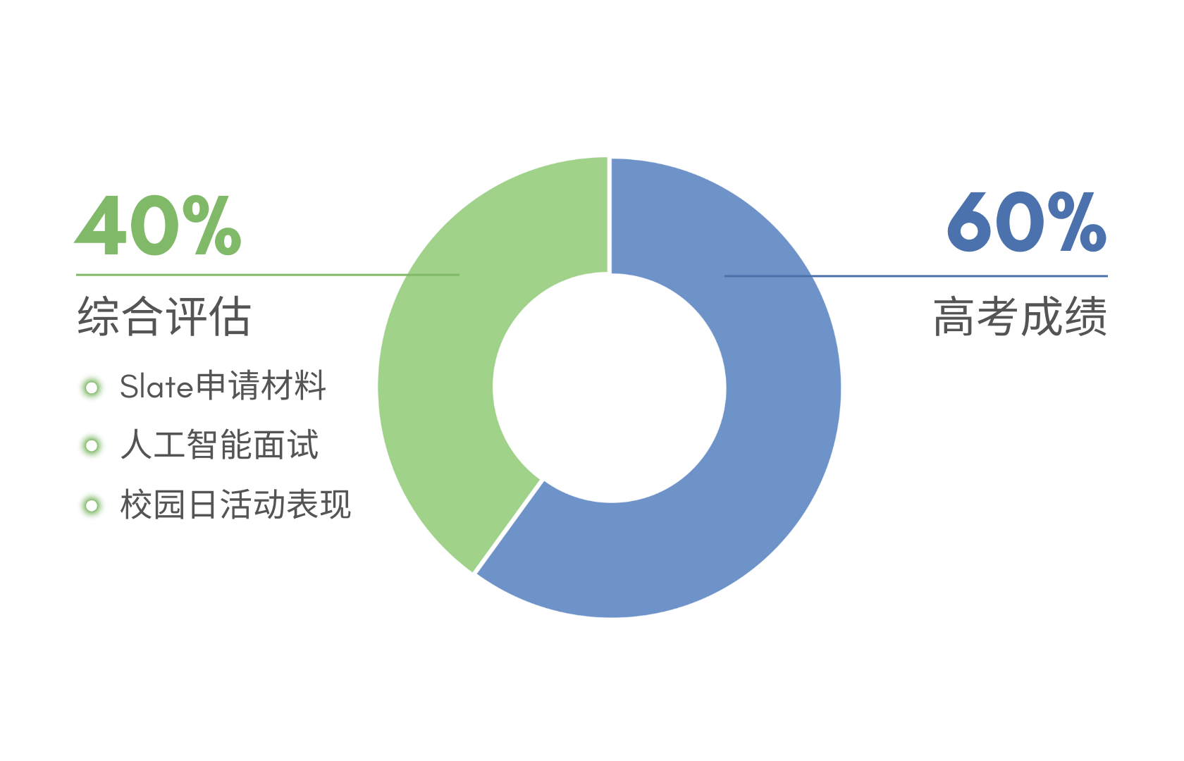 据此,学校采用"综合评价+高考"的录取模式,按"6-4"比例对申请者进行综合评分择优录取:高考成绩占比60%,学校自主综合评估成绩占比40%。
