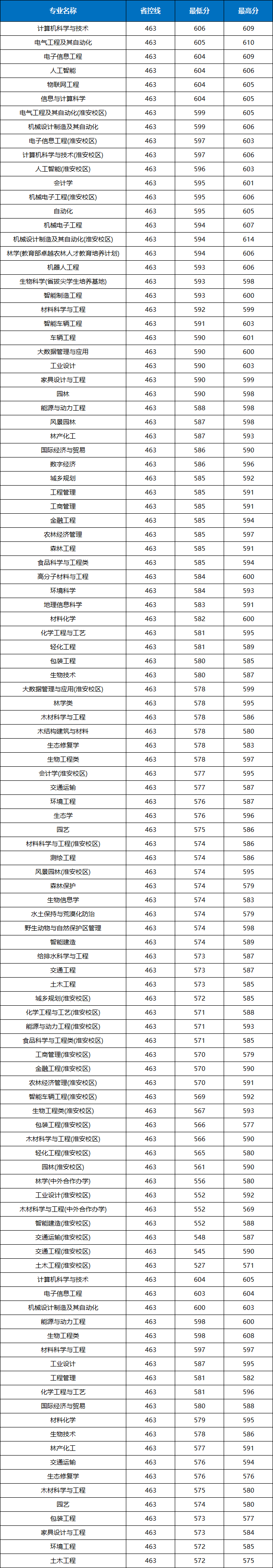 南京林业大学2025年录取分数线