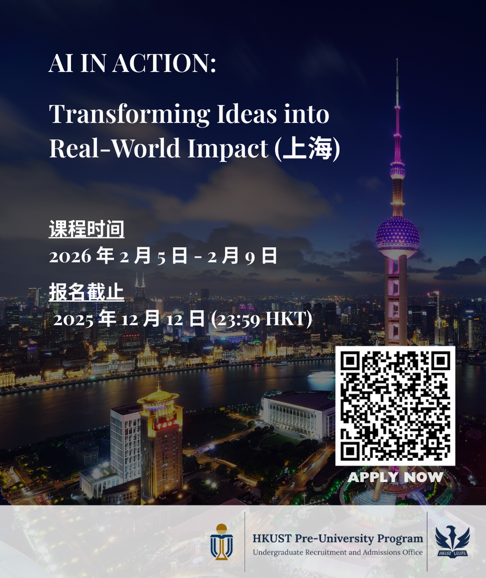 人工智能正改变我们的世界:无人驾驶、机器人、智能客服……这些未来感十足的场景,已经走进我们的日常生活。香港科技大学卓越先修计划将于即将到来的寒假,在上海举办专为高中生打造的沉浸式AI课程,带你跨越书本和理论,走进人工智能的探索和实践之旅!