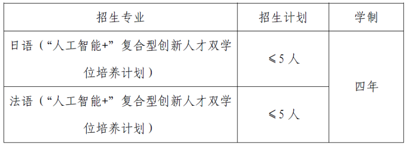 外语类保送生招生专业依托人工智能领域学科优势,理、工、管、文四大学科交叉,培养理论基础扎实、具备卓越实践能力和前瞻创新思维的外语复合型人才。