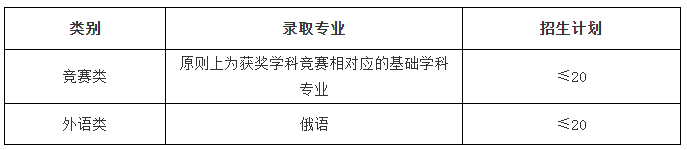 2.外语类:教育部批准的具有推荐外语类保送生资格的外国语中学中具备外语类保送生资格的应届高中毕业生,且外语语种为英语或俄语。
