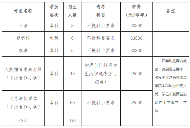 第十四条 2026年学校计划招收本科学生120名,具体如下: