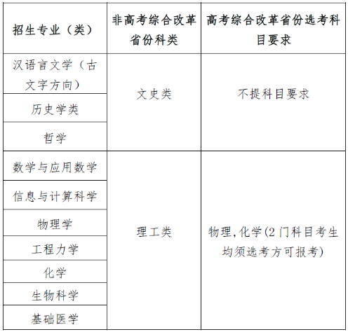 在强基计划招生的省份,符合当年高考报名条件,综合素质优秀或基础学科拔尖,并有志于将来从事相关领域科学技术工作的高中毕业生均可申请报名。申请报名考生分为以下两类,不能兼报。