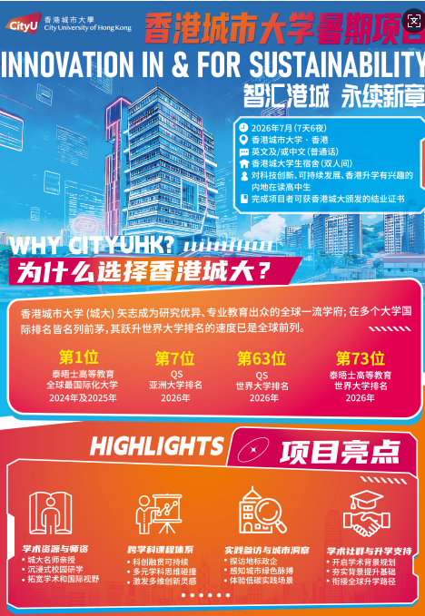这个夏天,让我们在香港城市大学,立足香港,连接世界,共创可持续未来!