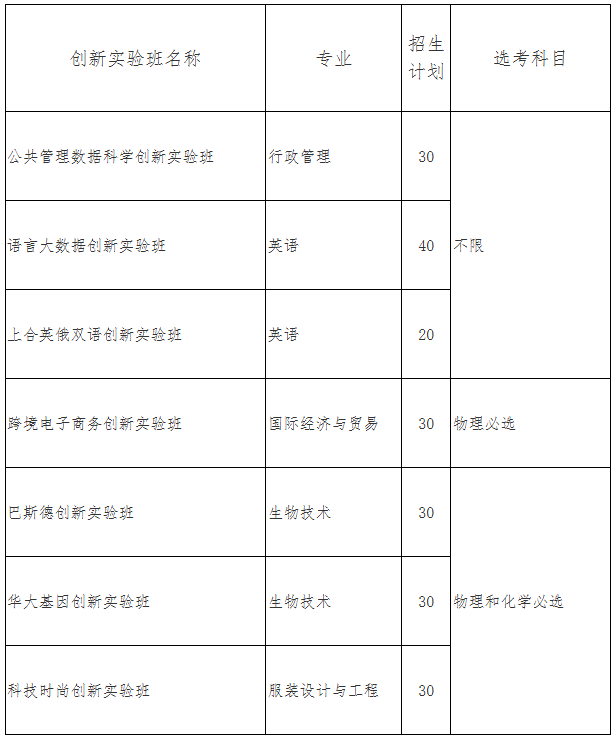 注:1.英语(语言大数据创新实验班)、英语(上合英俄双语创新实验班)只招收外语语种为英语的考生。