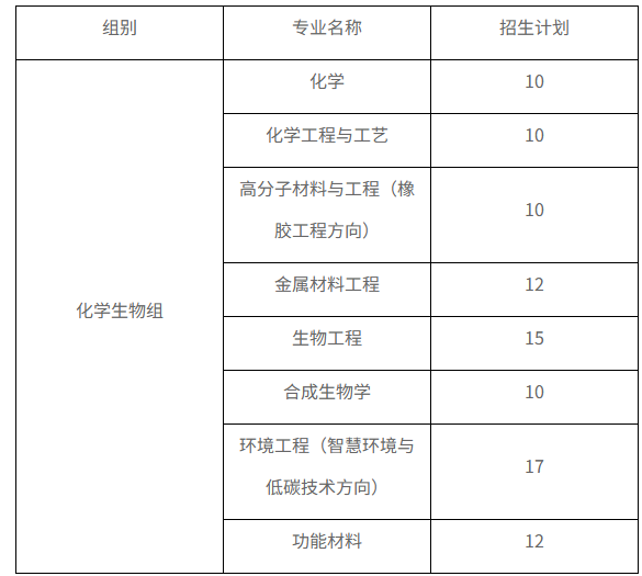 (一)化学生物组:选考科目要求为物理和化学(必选),计划招生96名。