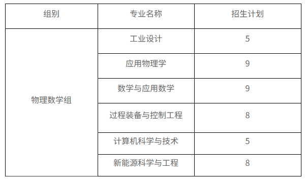 (二)物理数学组:选考科目要求为物理和化学(必选),计划招生44人。