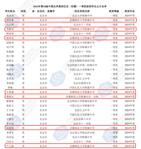 推荐阅读:2024年第38届全国中学生化学竞赛初赛获奖名单汇总