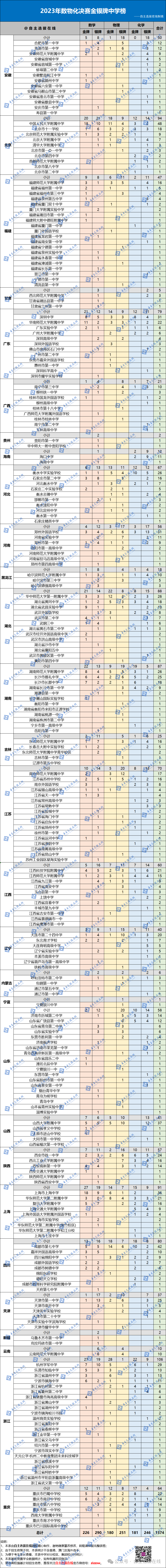 随着2024年数学、物理、化学学科竞赛决赛的临近,各省中学的获奖情况成为了衡量拔尖人才培养实力的重要指标。这些竞赛不仅是对学生学术能力的考验,也直接影响着学生的初高择校及升学规划。尤其是金牌、银牌奖项,它们对应着强基计划中的破格资格,为学生提供了更多的升学机会。今天,自主选拔在线团队整理了2023年数物化学科竞赛金银牌中学榜,供大家参考!