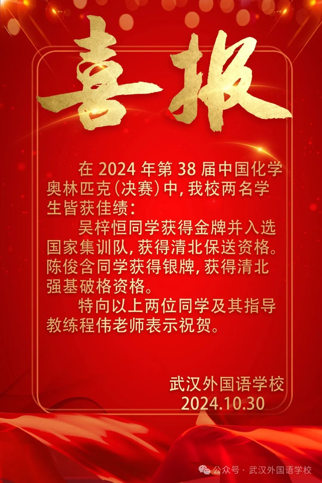 武汉外国语学校2024年化学竞赛决赛中学喜报