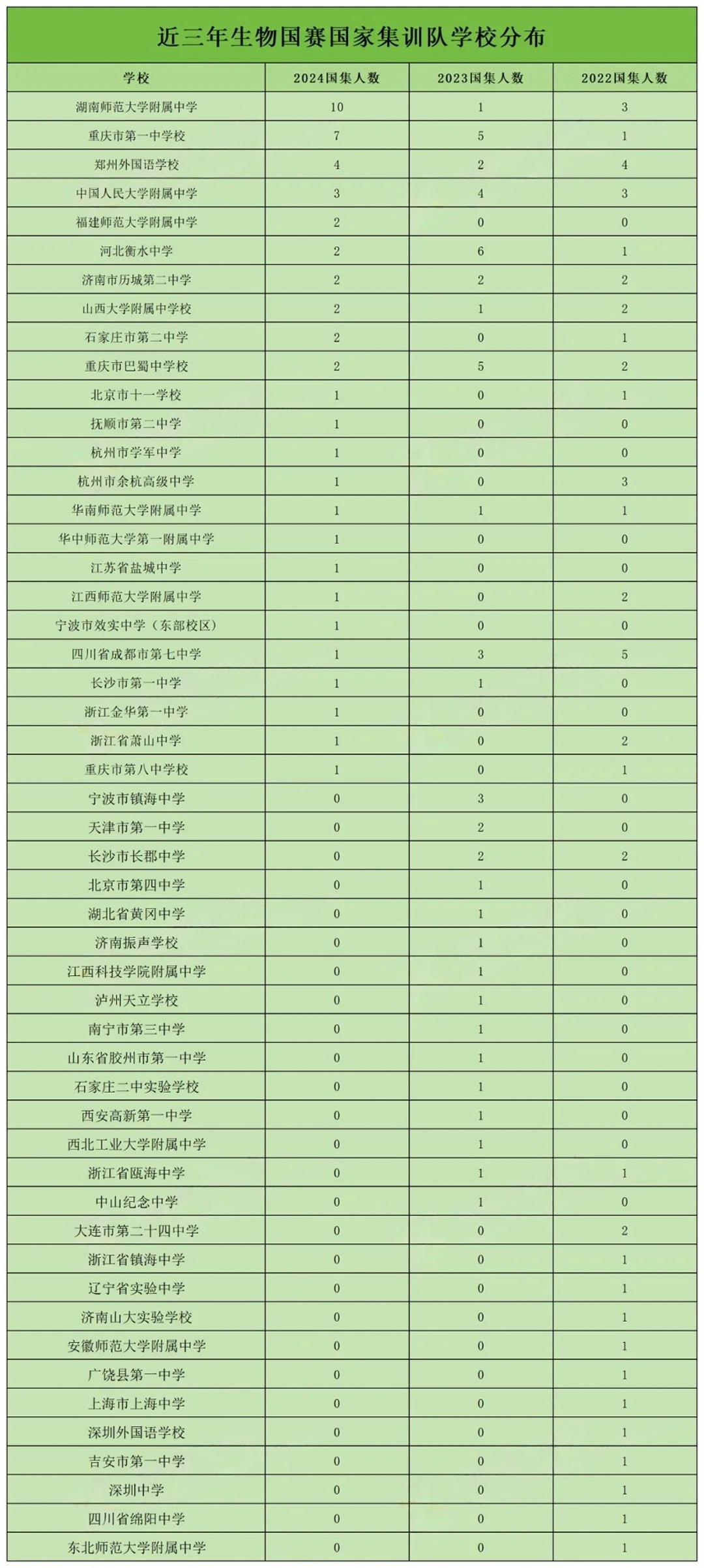 今年生物竞赛共有50名同学获得保送名额,其中,湖南省以11人进入国集的成绩位列第一,其中10名同学来自湖南师范大学附属中学。相较于去年而言,湖南省在今年的生物竞赛中进步巨大,老牌竞赛强省的实力依旧不容小觑。