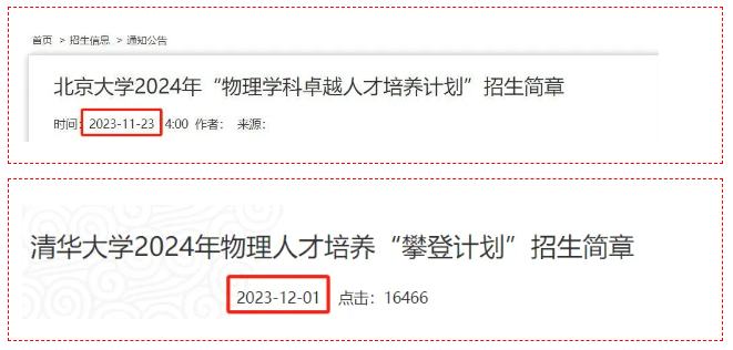根据往年简章发布时间推测,北京大学2025年“物理学科卓越人才培养计划”和清华大学2025年”物理人才培养攀登计划“招生简章预计将于11月份左右发布。