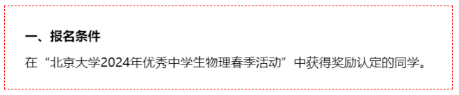 前一期活动的成绩、排名会作为后续活动的报名“门槛”。如:北京大学物理夏令营报名条件是“2024物理春季活动中获得奖励认定”的学生;清华大学化学系2024年“大中衔接”研讨与教学活动报名条件之一就是春季研讨营成绩突出、较好(排名前40%)和低年级较好(排名41%-50%)的学生。