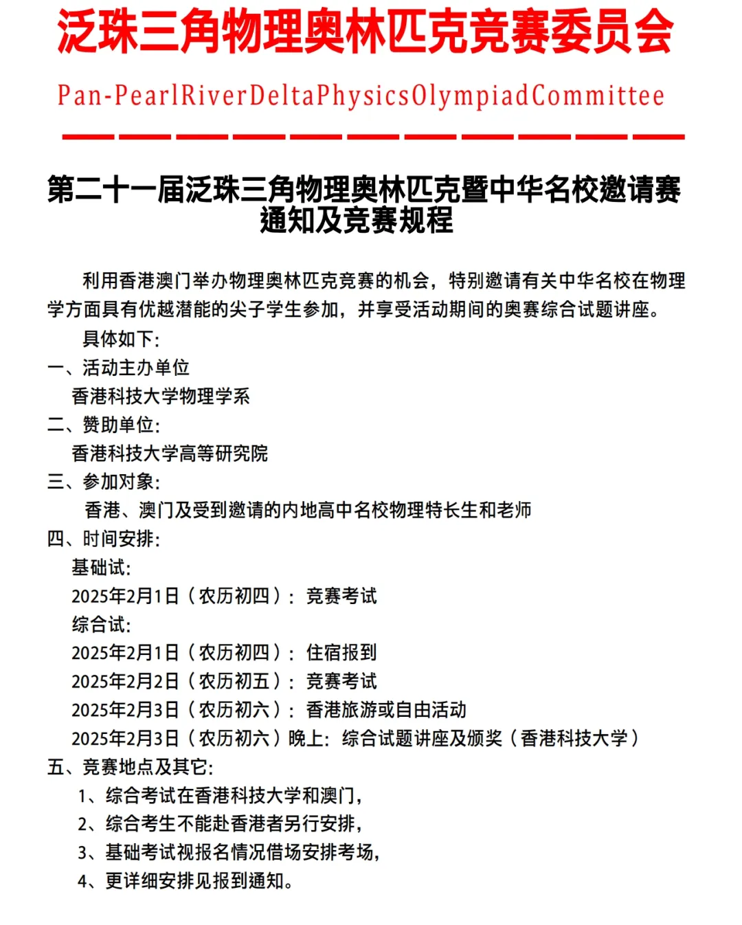 备受物竞生瞩目的泛珠三角物理奥林匹克暨中华名校邀请赛即将迎来第21届盛典!报名将于11月底截止,意向参赛的同学需抓紧时间,提前做好充分准备,切勿错过这一展现物理才华的绝佳机会!和自主选拔在线一起来看下吧!