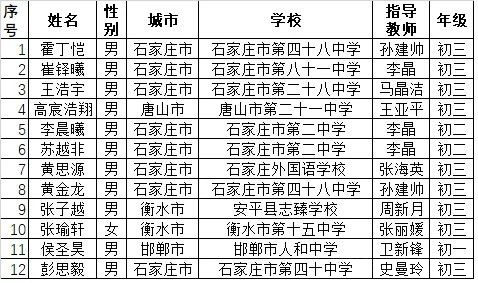 1.请认真核对报名表信息,尤其是姓名、性别、学校和年级,如有更改,请于11月24日18:00前将更新信息以学校为单位统一发至省组织单位(noihebei@126.com),更正的地方请用红色字体标记。