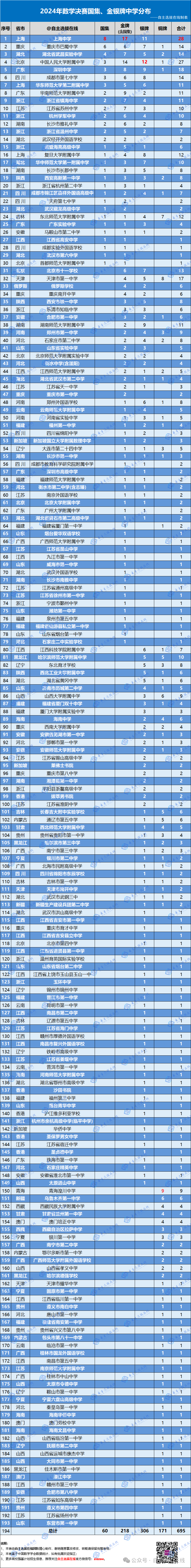 2024年CMO国集、金银铜牌中学分布,上海中学断层领先