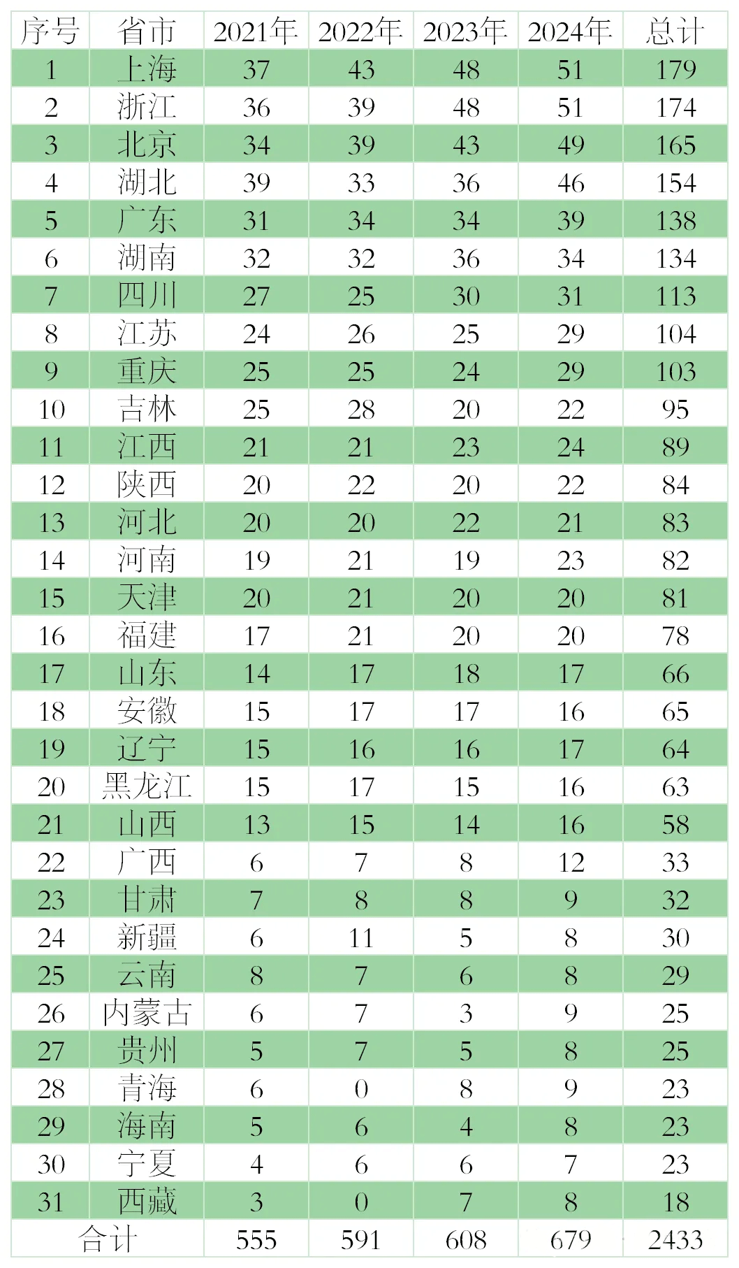 2.省队组成方式或名额分配需采取相应控制措施。近年来,省队名额分配呈现两极分化趋势,不同省份间名额差距逐渐扩大。以下为近四年各省队数量统计表: