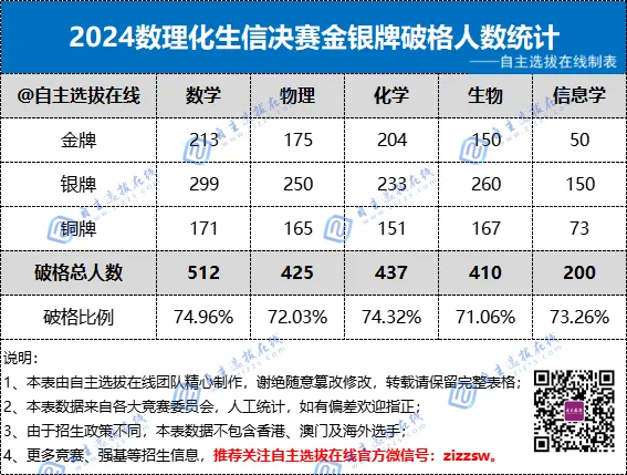 2、本文内容及表格所提到的“破格”为金牌、银牌合计。